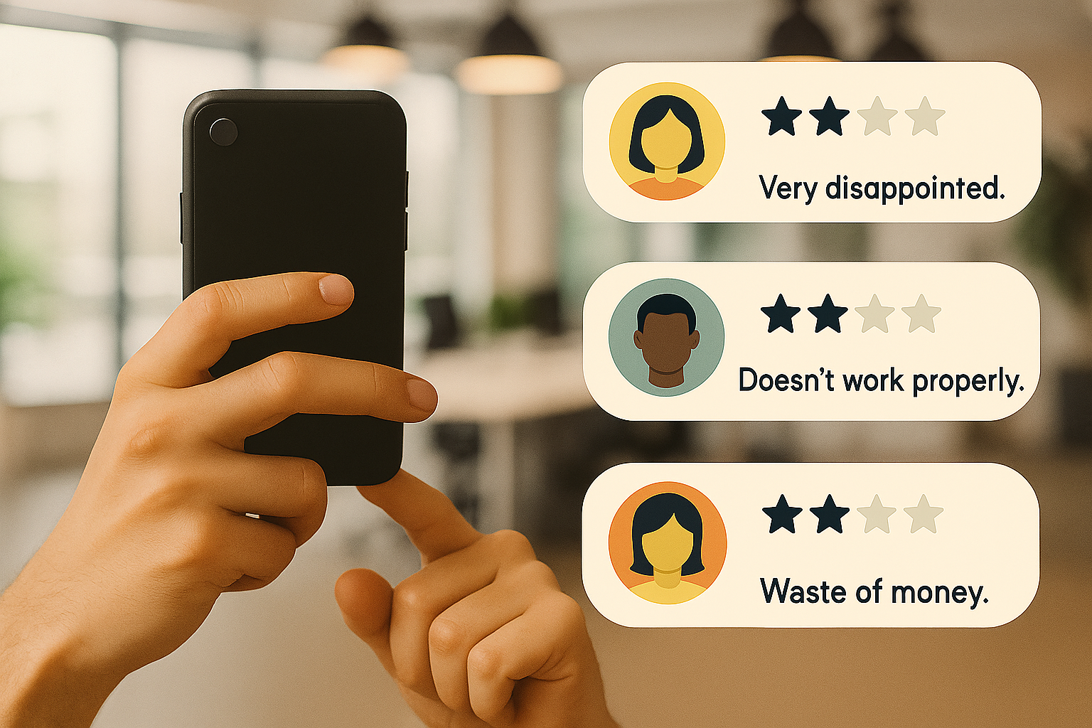 Illustration of Negative Customer Reviews on Mobile Device