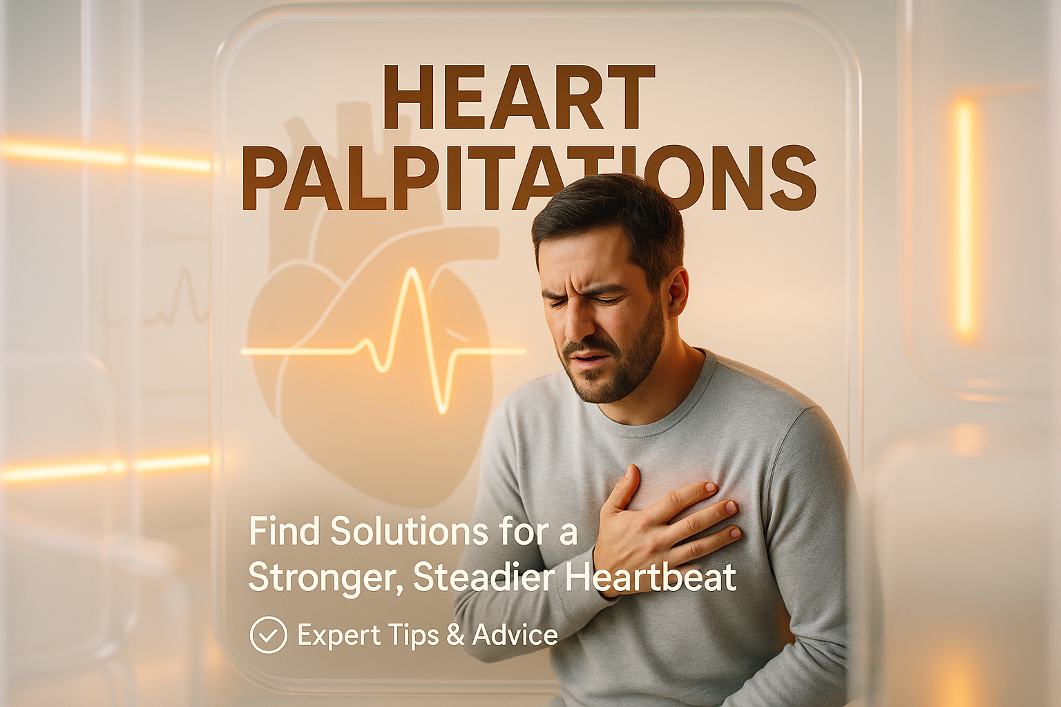 An educational graphic illustrating heart palpitations with a focus on expert advice and solutions for a healthier heartbeat, ideal for health-related content.