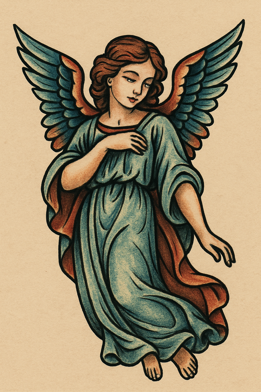Illustration of a Serene Angel with Wings and Flowing Garment