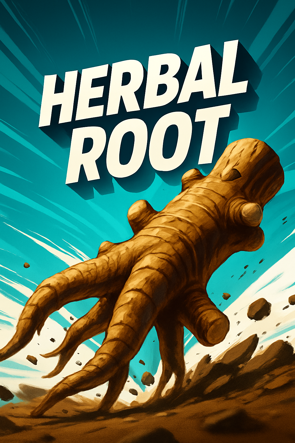 /Collection: /by davooda/Type: PNG/This vibrant image showcases a dynamic 3D illustration of a herbal root, bursting with energy against a smooth gradient background. The root is depicted with motion lines, emphasizing its forceful emergence from the ground.