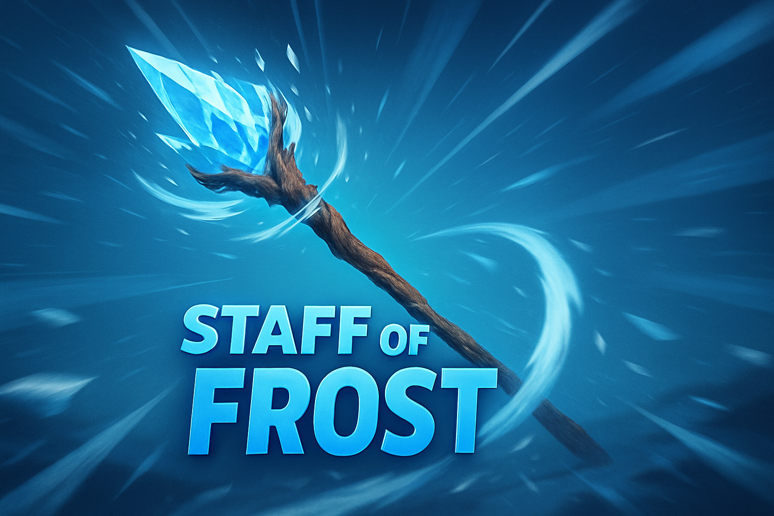 /Collection: /by davooda/Type: PNG/A visually striking staff of frost with a crystalline tip, set against a dynamic blue background. The design features motion elements that enhance the sense of movement.