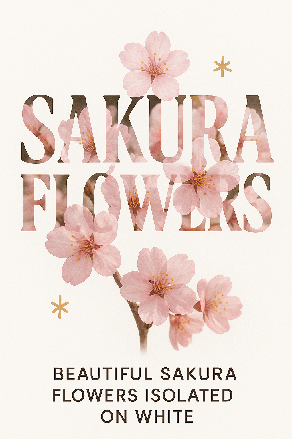 A visually appealing graphic showcasing sakura flowers with a modern typographic design, ideal for spring-themed promotions or floral arrangements.
