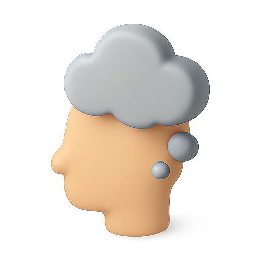 A whimsical 3D illustration of a human head silhouette featuring a thought cloud, perfect for creative projects, educational content, or mental health themes.