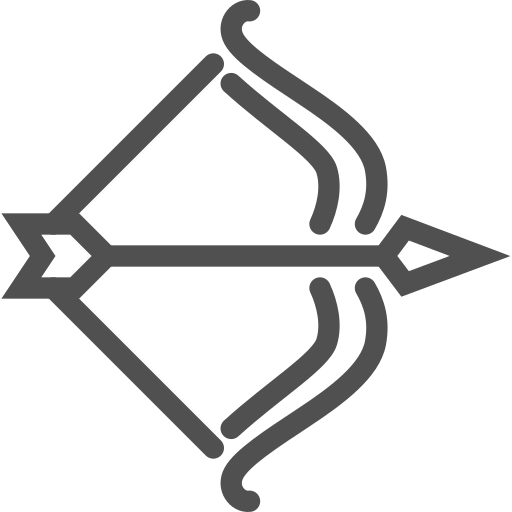 outline simple icon: ancient weapon, archaic warfare, bow and arrow, combat, historical