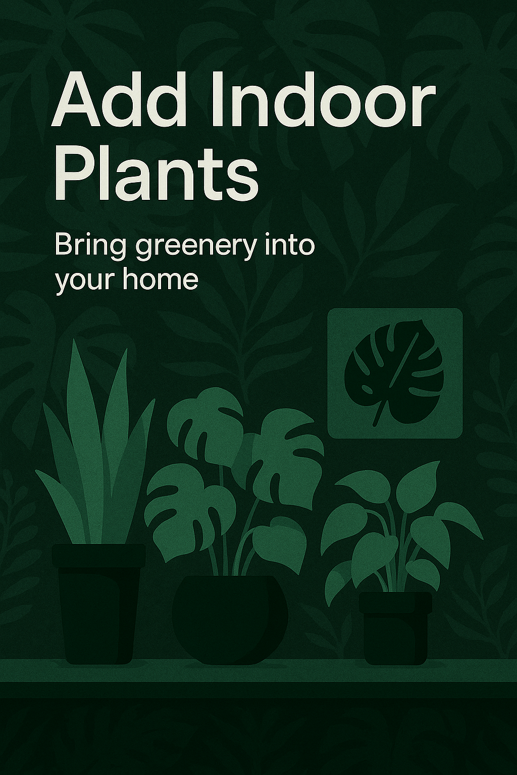 Modern promotional graphic featuring indoor plants with a minimalist design, ideal for home decor marketing or gardening blogs.