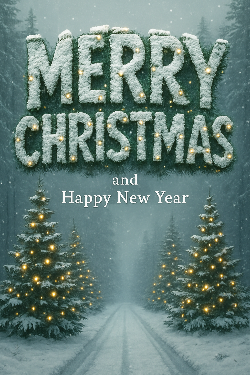 Festive Christmas Greeting Card Design with Snowy Landscape