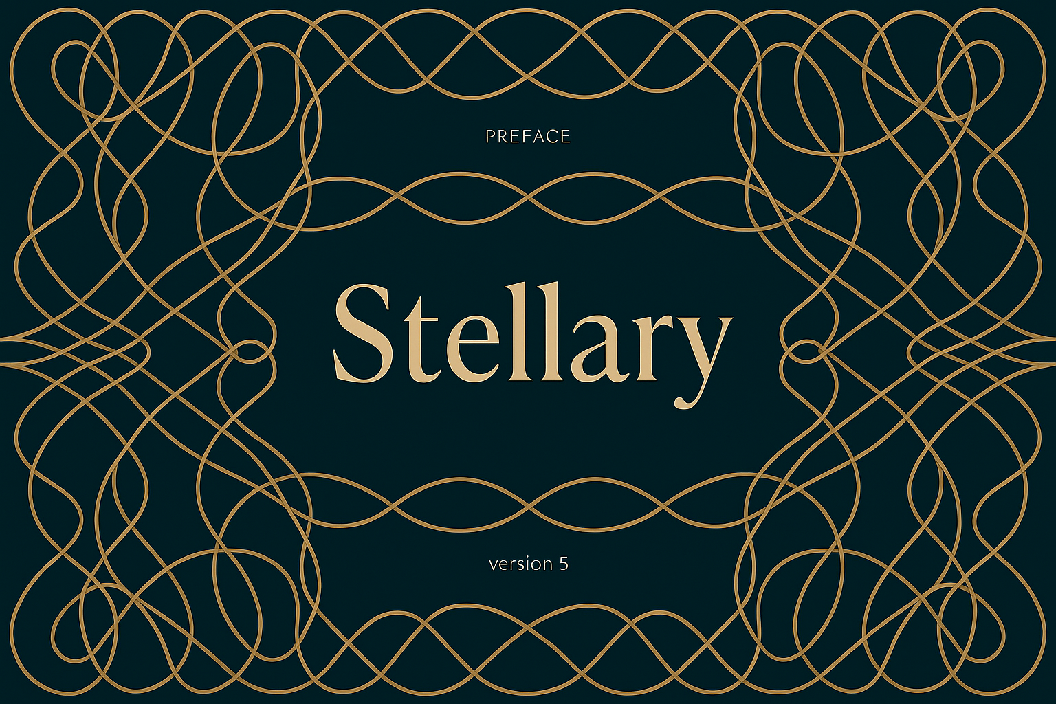 This image features intricate, elegant patterns in gold against a dark background, showcasing the title 'Stellary' in a stylish font, highlighting sophistication.