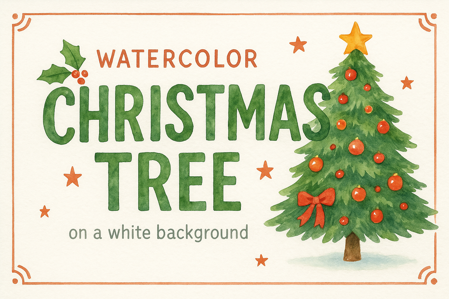 Watercolor Illustration of a Christmas Tree with Festive Accents