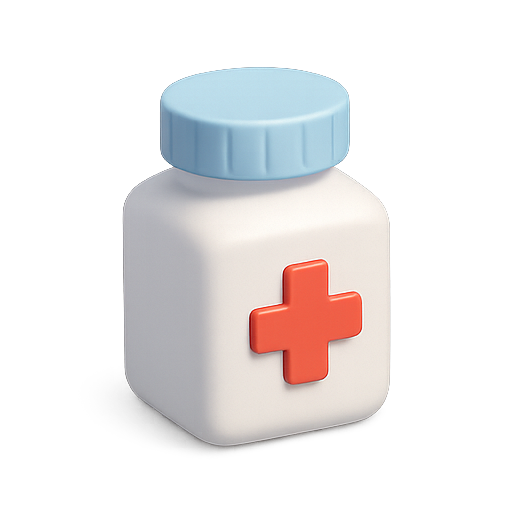 Stylized 3D graphic of a medicine bottle featuring a red cross symbol, ideal for healthcare and pharmaceutical applications.