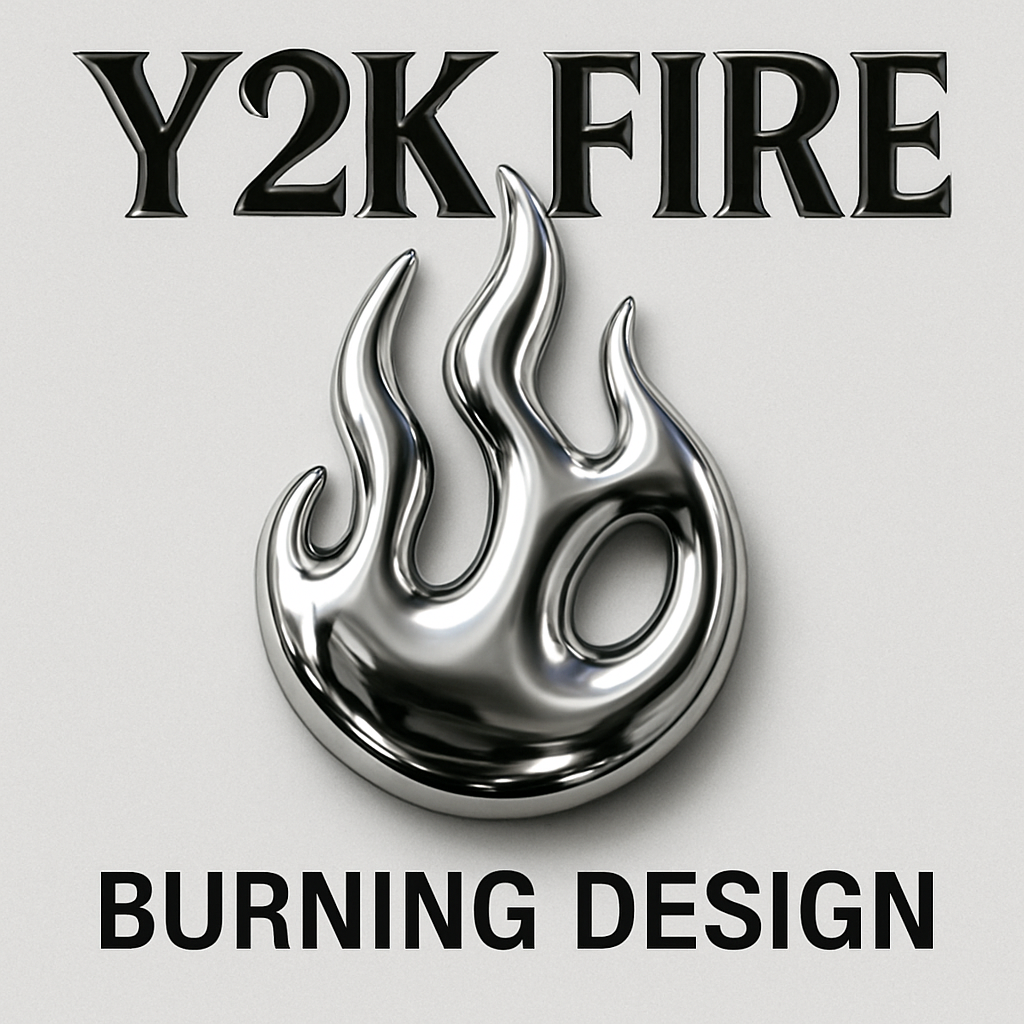 This logo features a sleek metallic flame icon paired with bold typography, ideal for branding and design projects focusing on modern aesthetics.