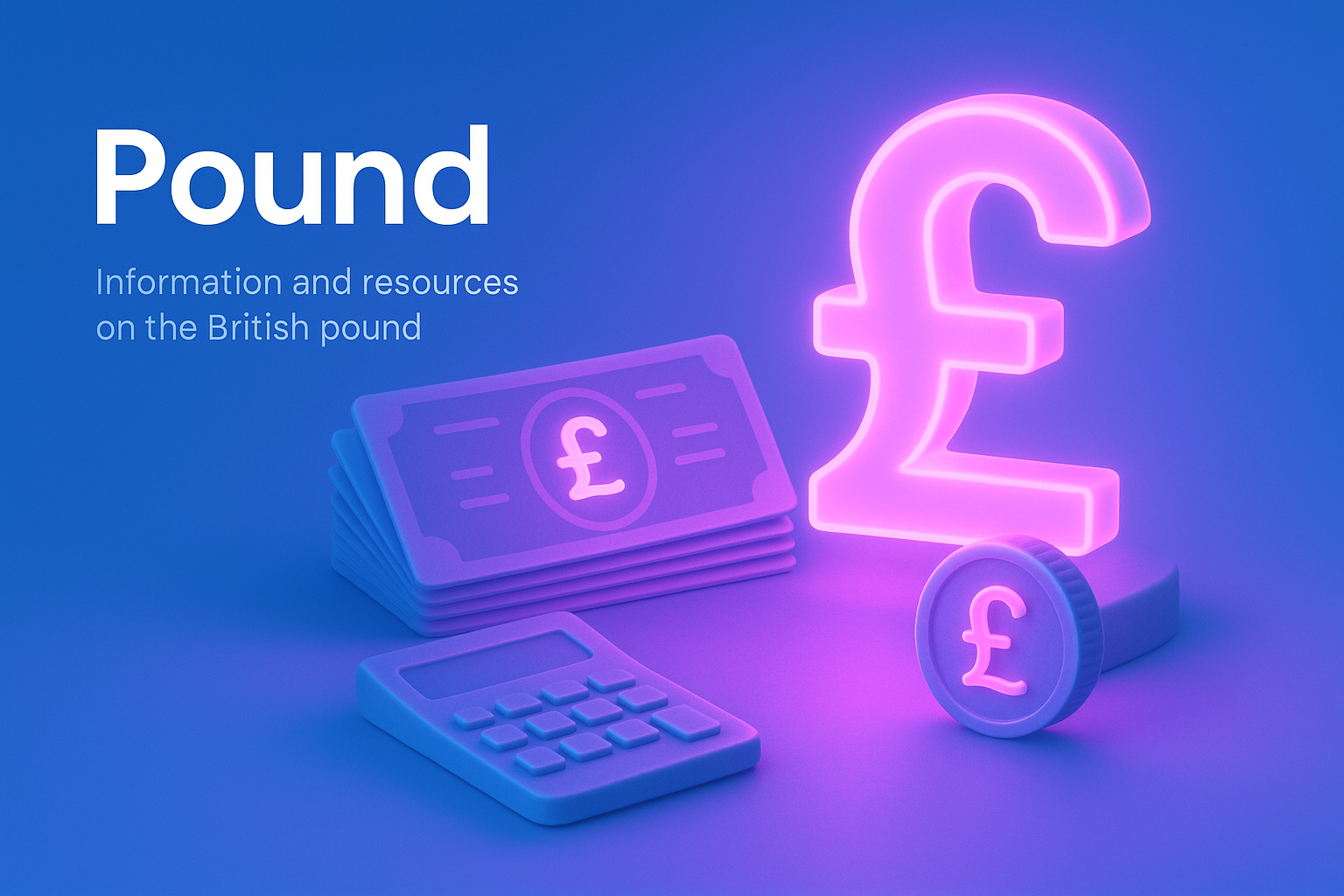 A vibrant composition featuring the British pound symbol, neon pink elements, and a blue background. The scene exudes a glowing atmosphere, enhancing the visual appeal.