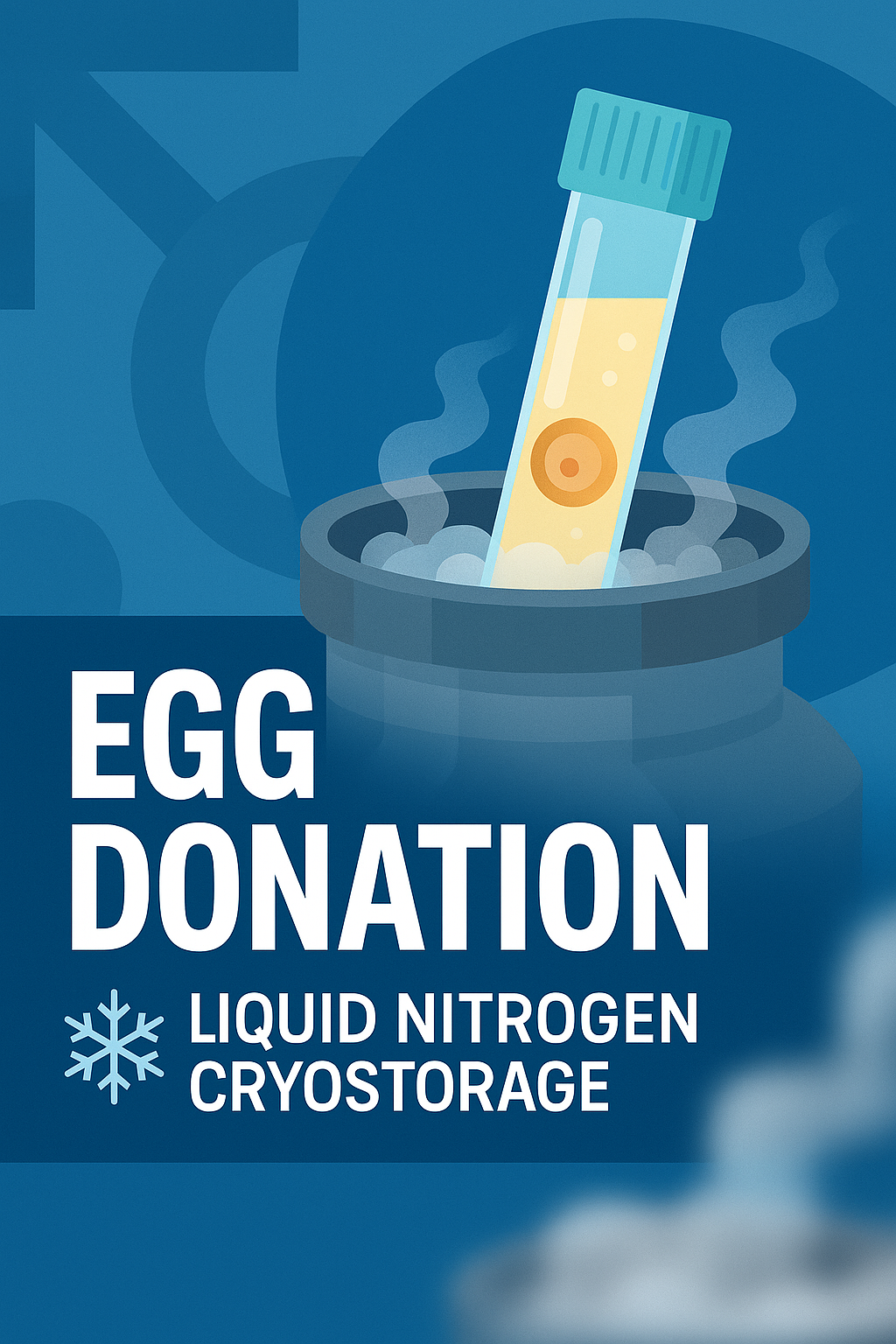 /Collection: /by davooda/Type: PNG/A visually engaging graphic representing the concept of egg donation and liquid nitrogen cryostorage, featuring a test tube and a storage container, ideal for educational or informational purposes.