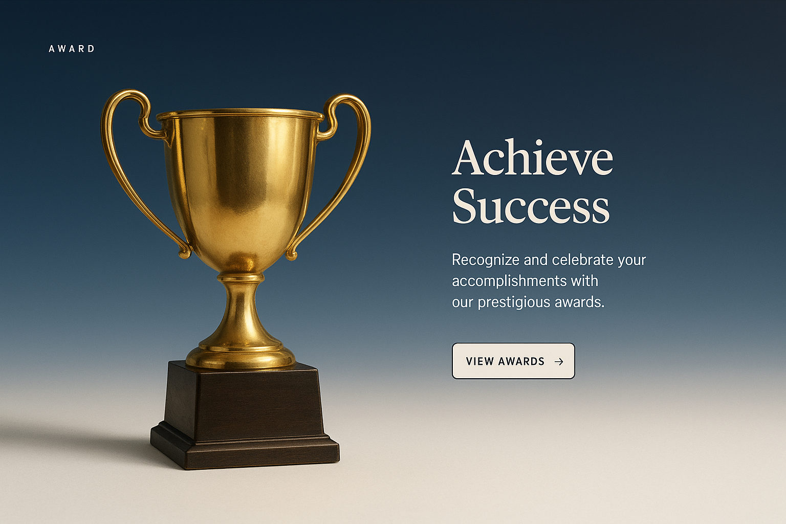 /Collection: /by davooda/Type: PNG/A polished gold trophy stands against a gradient background, symbolizing achievement. Accompanying text encourages recognition and celebration of accomplishments, with a visible action button.