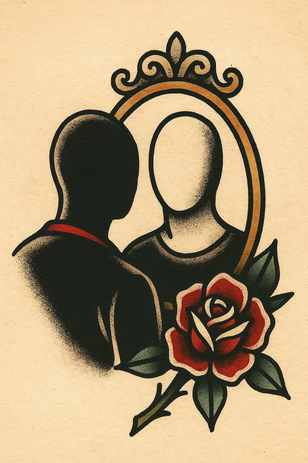 Tattoo Design Featuring Silhouette in a Mirror with Rose