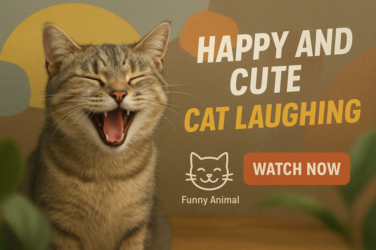 Playful graphic showcasing a happy cat laughing, designed for social media engagement. Ideal for animal lovers and humorous content sharing.