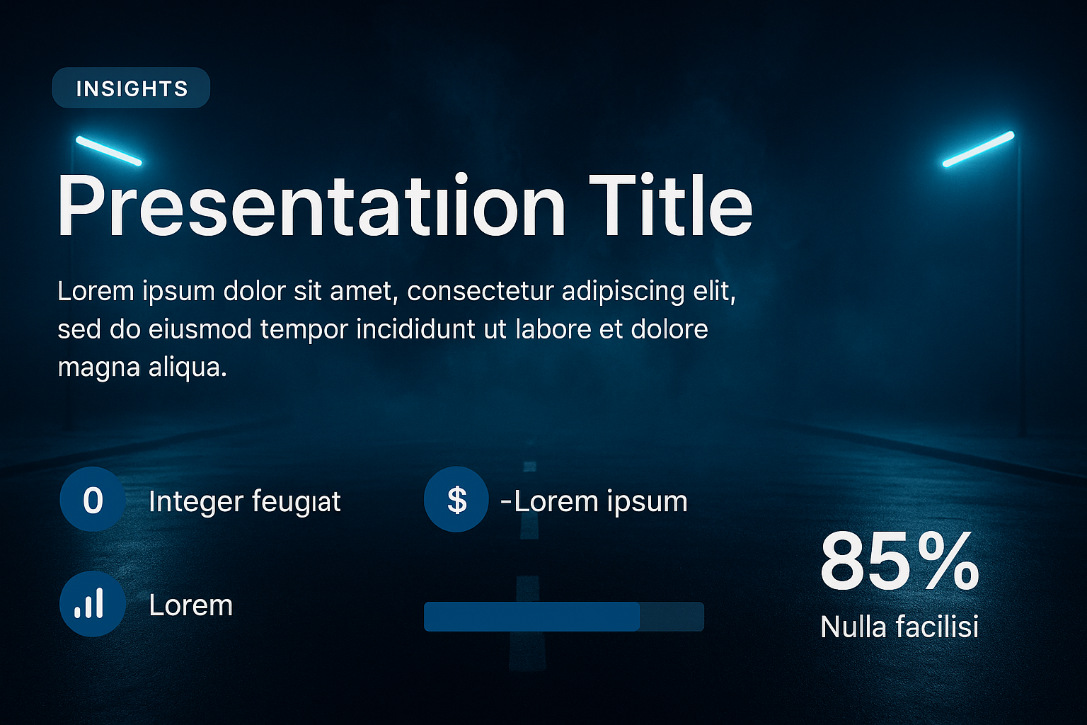 /Collection: /by davooda/Type: PNG/Sleek presentation slide featuring a dark background with illuminated elements, designed for corporate or business insights. Ideal for professional presentations.