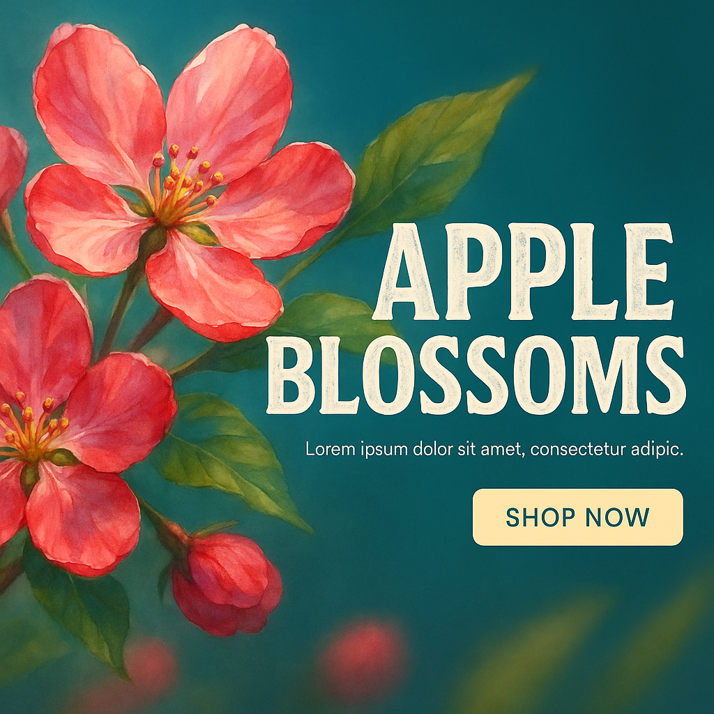 Vibrant Red Apple Blossoms Watercolor Illustration