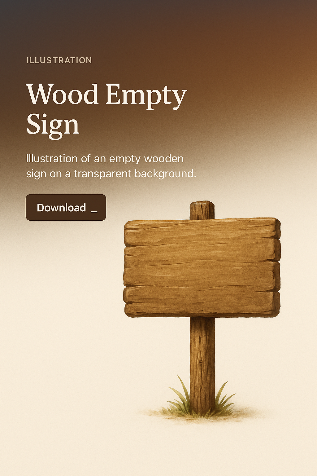 A beautifully crafted illustration of an empty wooden sign, set against a gradient background. Ideal for web design with clear text areas and action buttons.