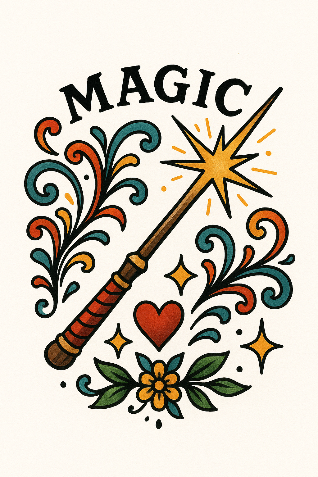 Whimsical Illustration of a Magic Wand with Floral Elements