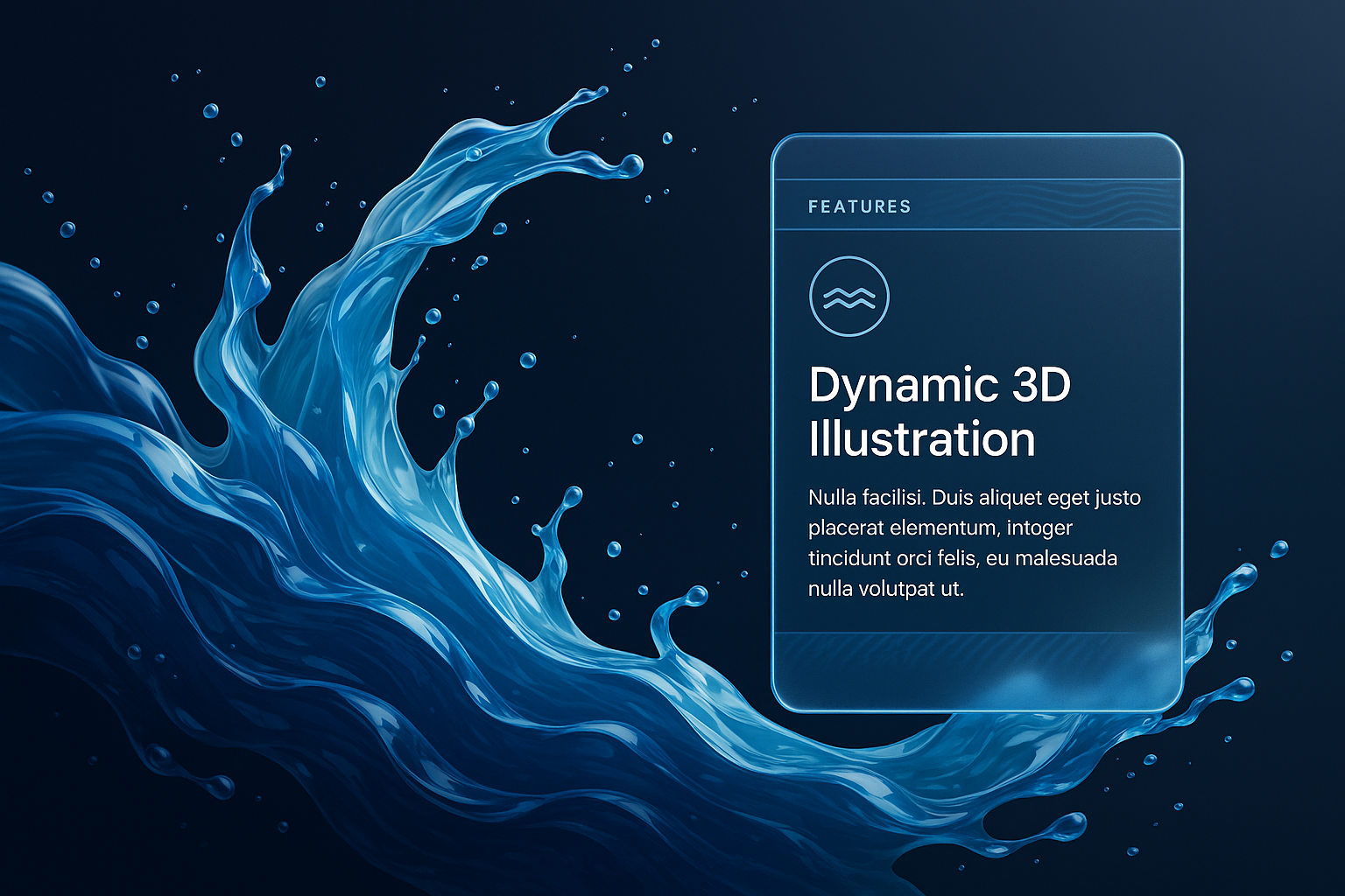 /Collection: /by davooda/Type: PNG/A striking 3D illustration showcases abstract flowing water waves on a deep black background. It includes a transparent feature block with text, adding a modern touch.