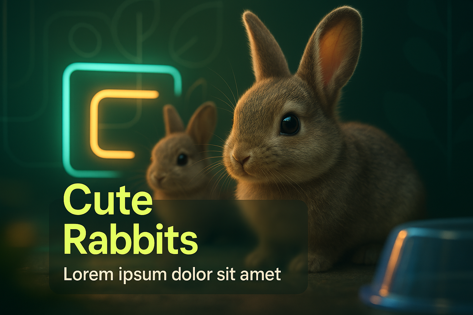 Adorable image of cute rabbits set against a soft-focus background with neon accents. Ideal for pet-related content or animal-themed marketing.