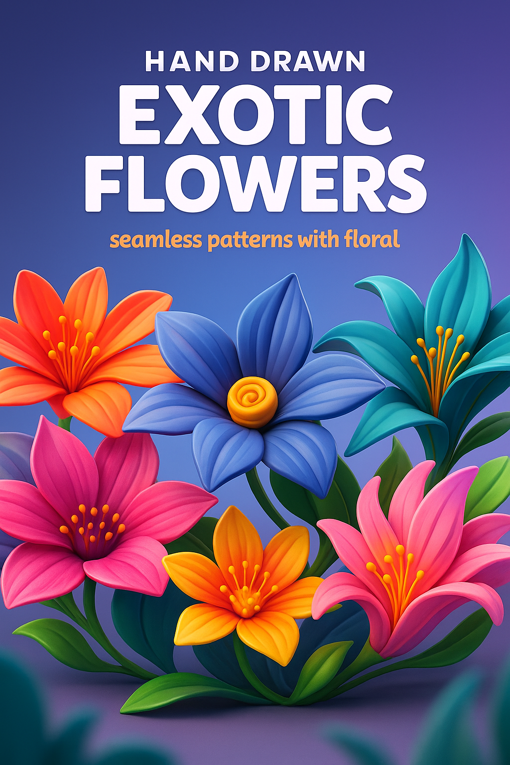 Vibrant 3D Exotic Flowers with Seamless Patterns