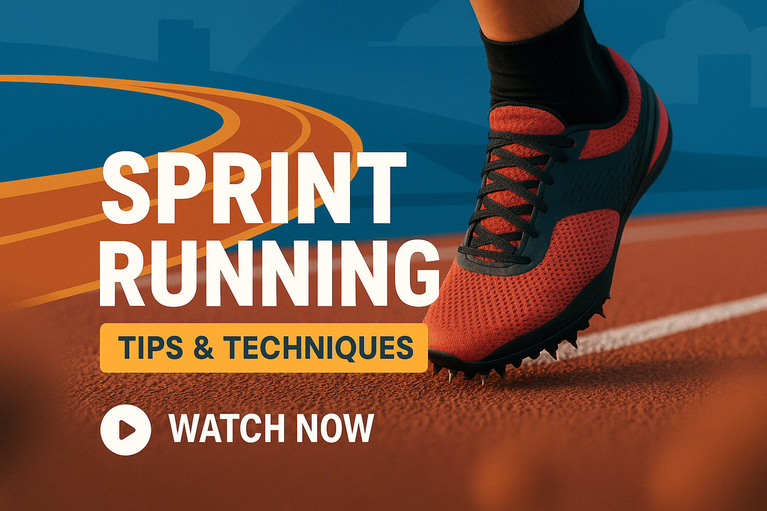 Vibrant promotional graphic for sprint running featuring a close-up of a running shoe on a track, aimed at athletes seeking tips and techniques.