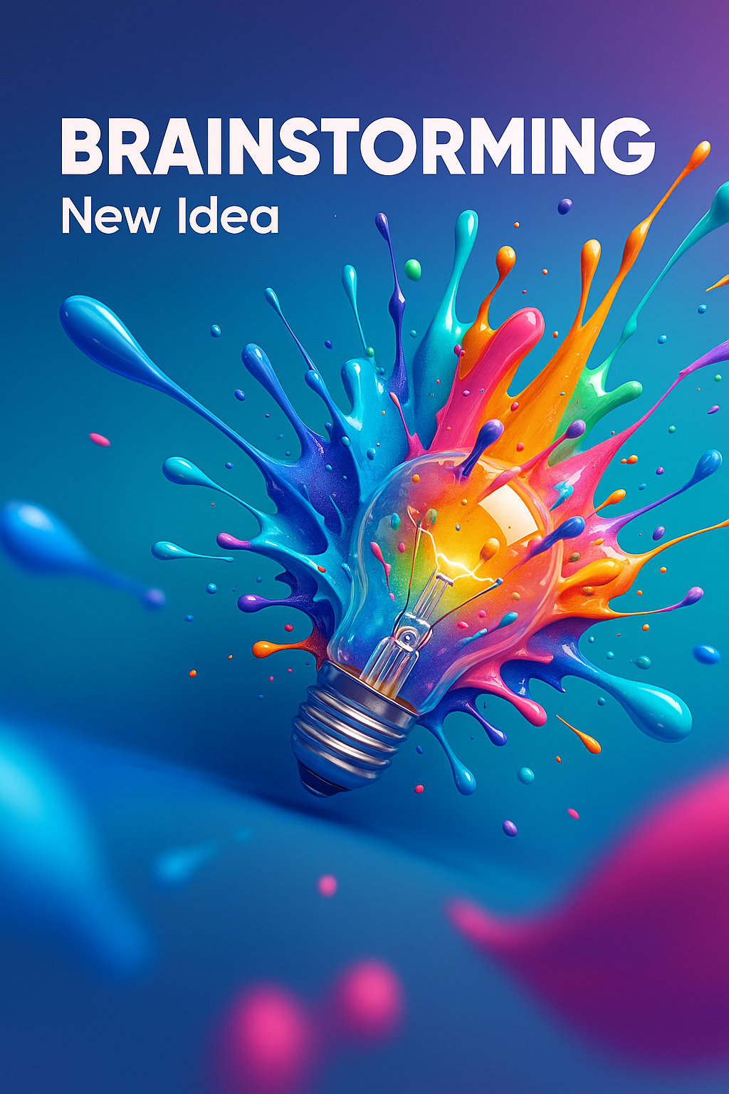/Collection: /by davooda/Type: PNG/A vibrant 3D illustration of a light bulb exploding with colorful paint splashes, symbolizing creativity and brainstorming. The background features a smooth gradient, enhancing the dynamic composition.