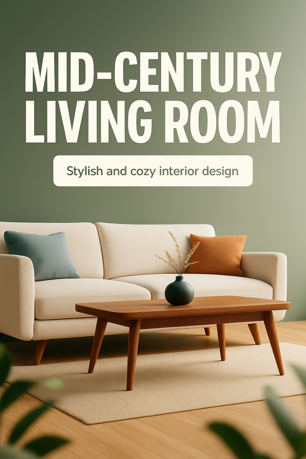 Modern Mid-Century Living Room Design with Cozy Aesthetic