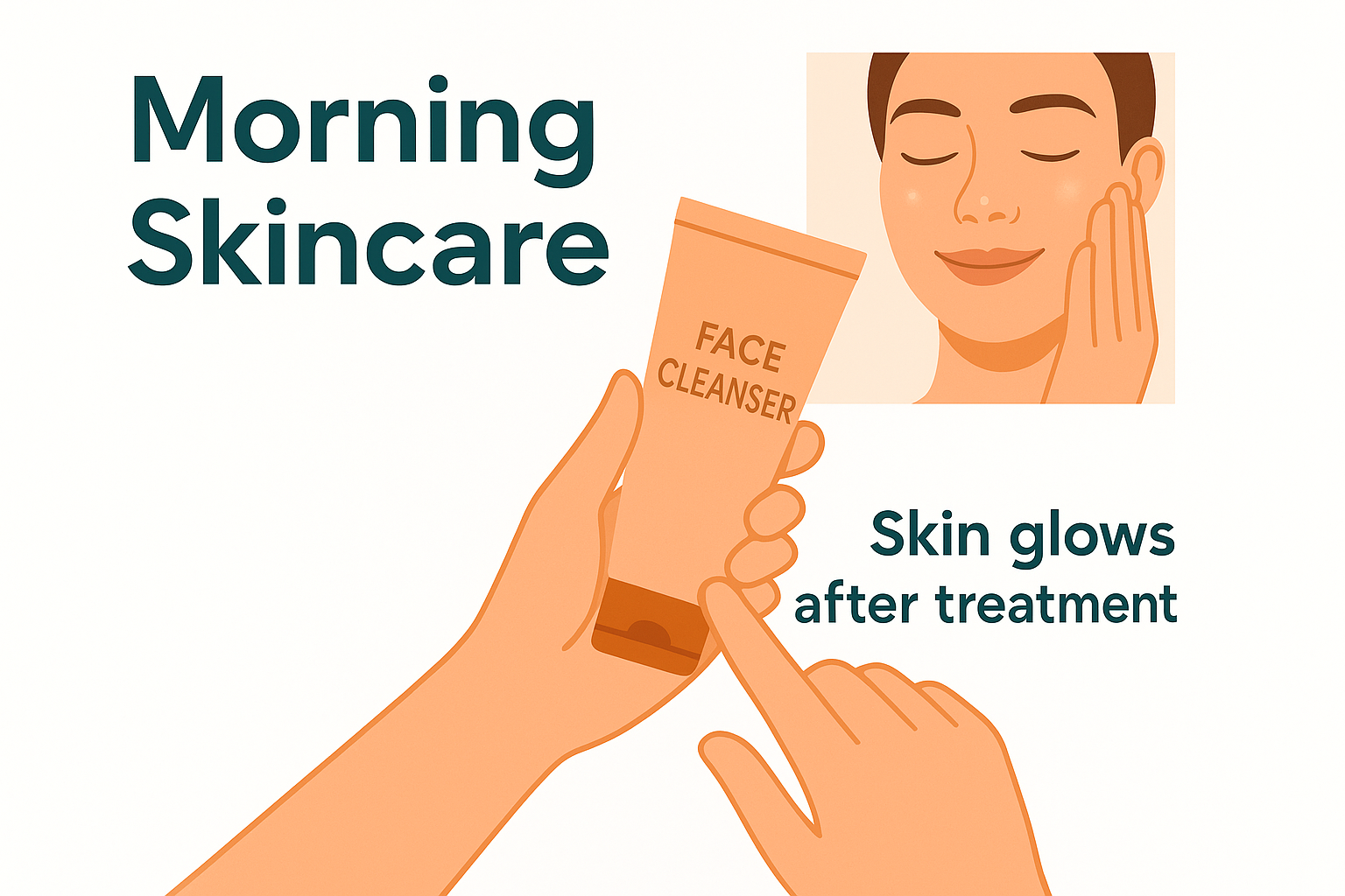 Illustration of Morning Skincare Routine with Glowing Skin Theme