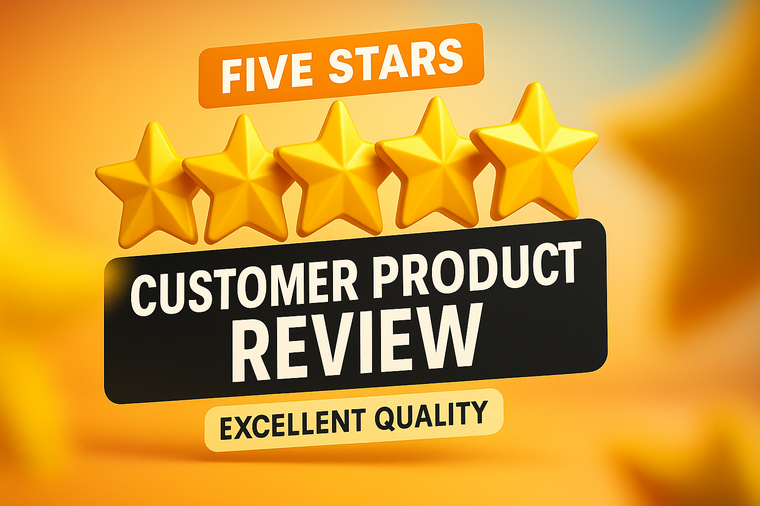 Vibrant graphic showcasing a five-star customer review theme with bold typography, ideal for e-commerce or product promotion.
