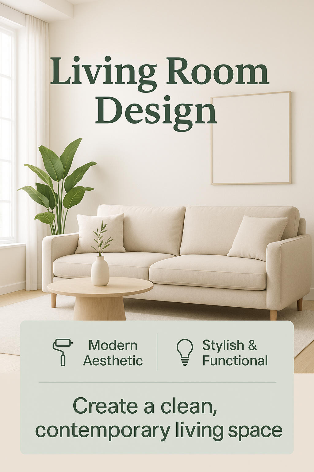 Modern Classic Living Room Interior Design Promotional Graphic