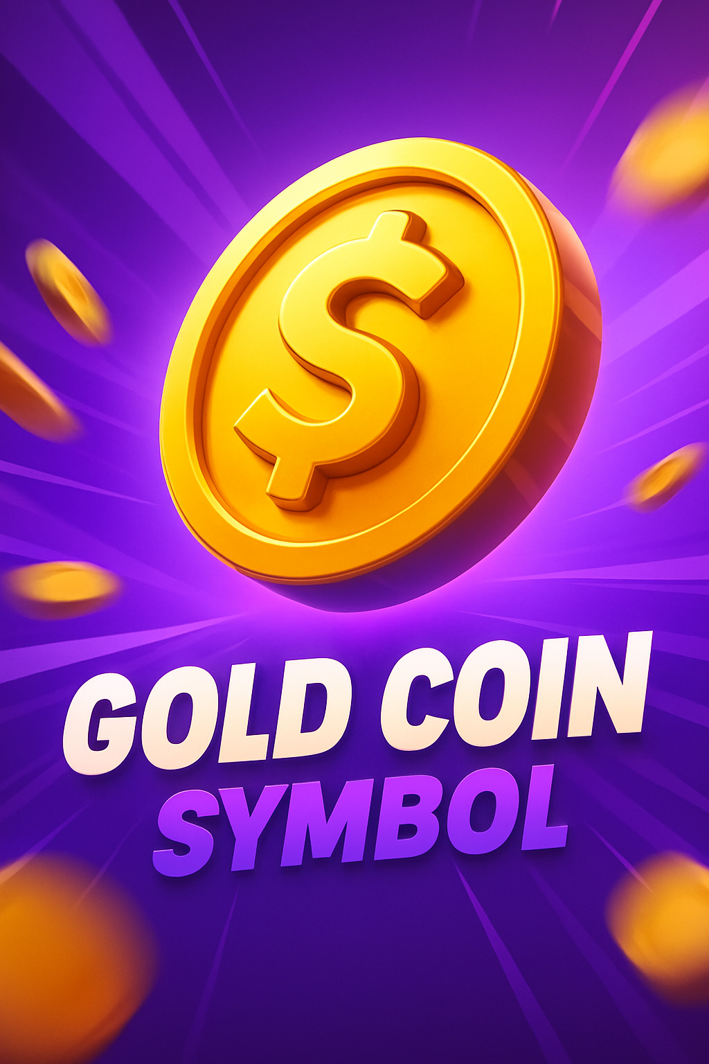 A visually striking 3D gold coin with a dollar sign, set against a dynamic purple background. The composition features rays emanating from the center, creating a sense of motion.