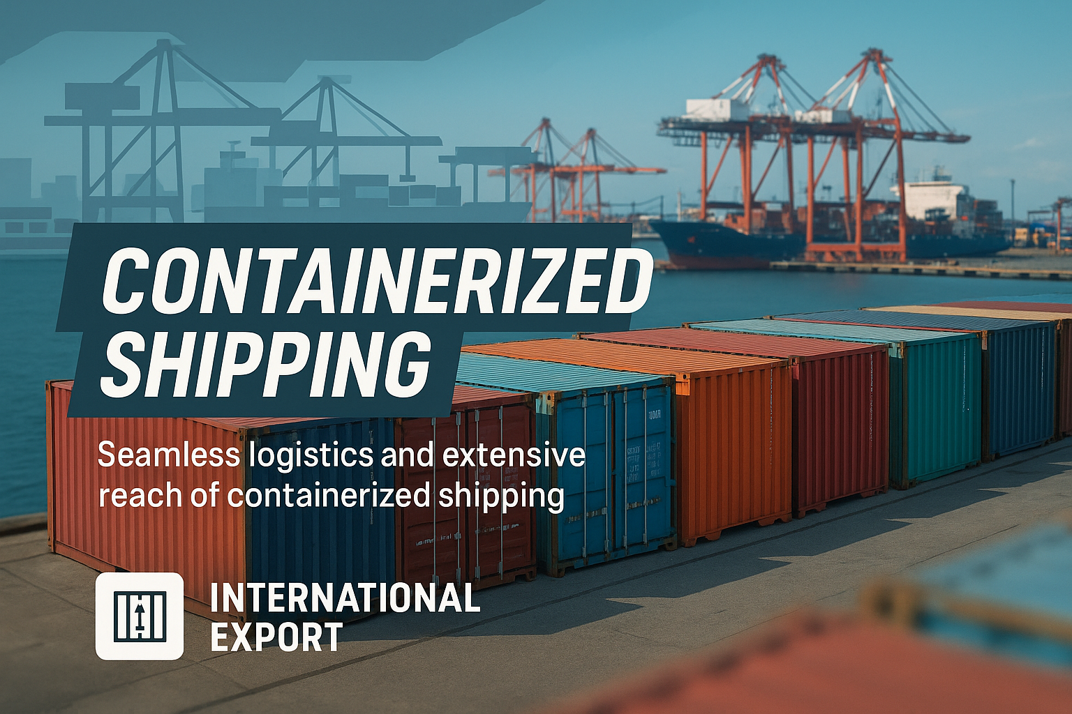 Professional image showcasing containerized shipping operations, featuring colorful shipping containers and cranes, ideal for logistics and export presentations.