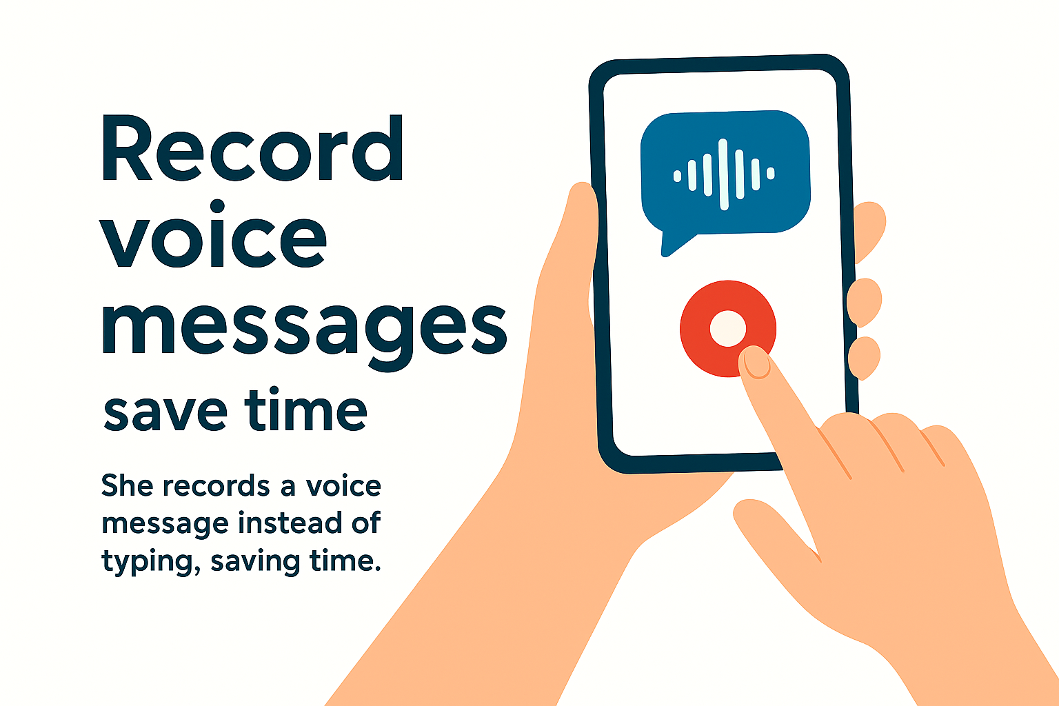A digital illustration showcasing a user recording voice messages on a smartphone, emphasizing time-saving benefits. The modern design is suitable for tech-related content.