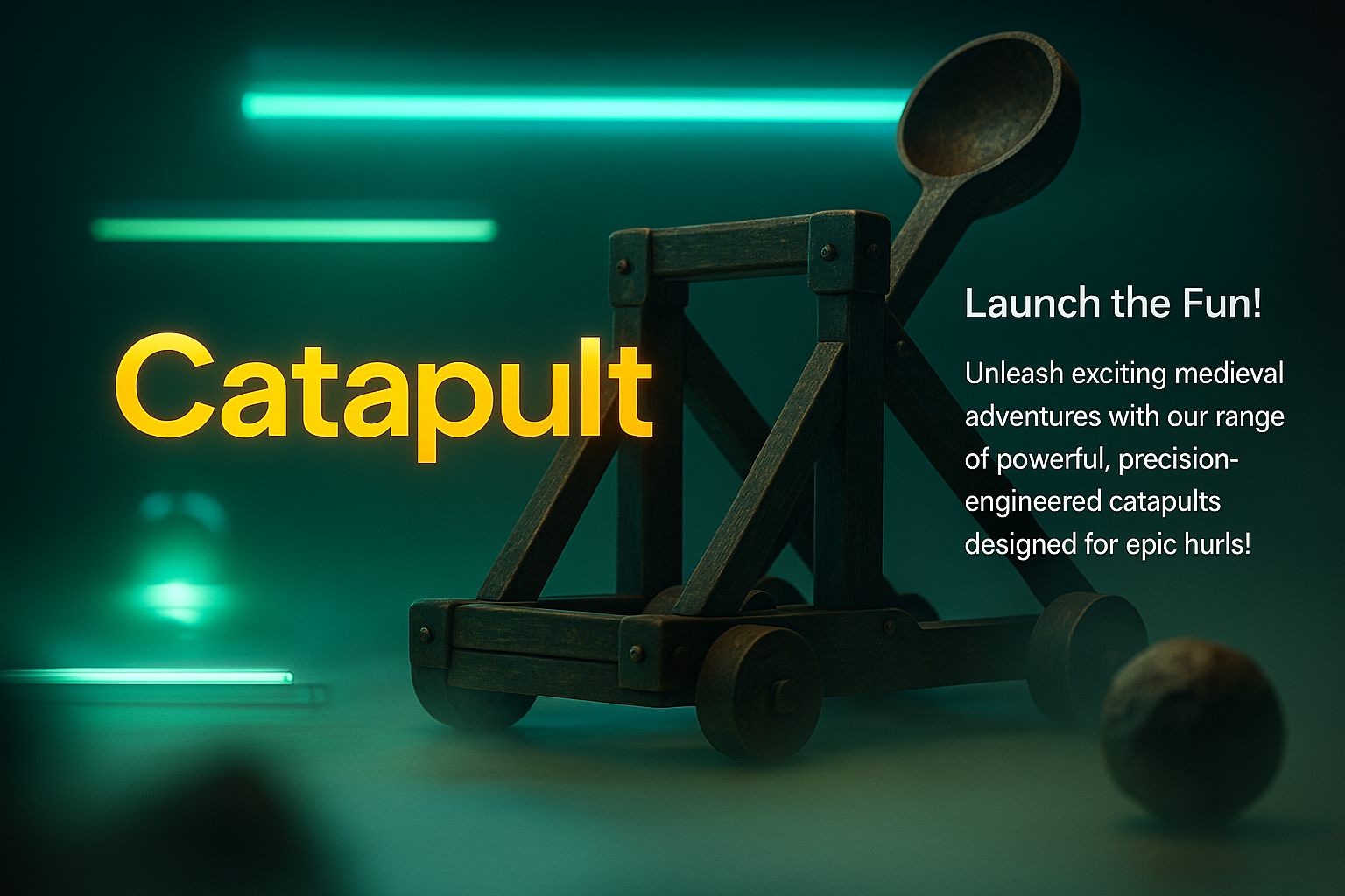 /Collection: /by davooda/Type: PNG/A visually appealing carousel slide featuring a realistic catapult design. Neon accents and a layered composition create a captivating marketing visual.