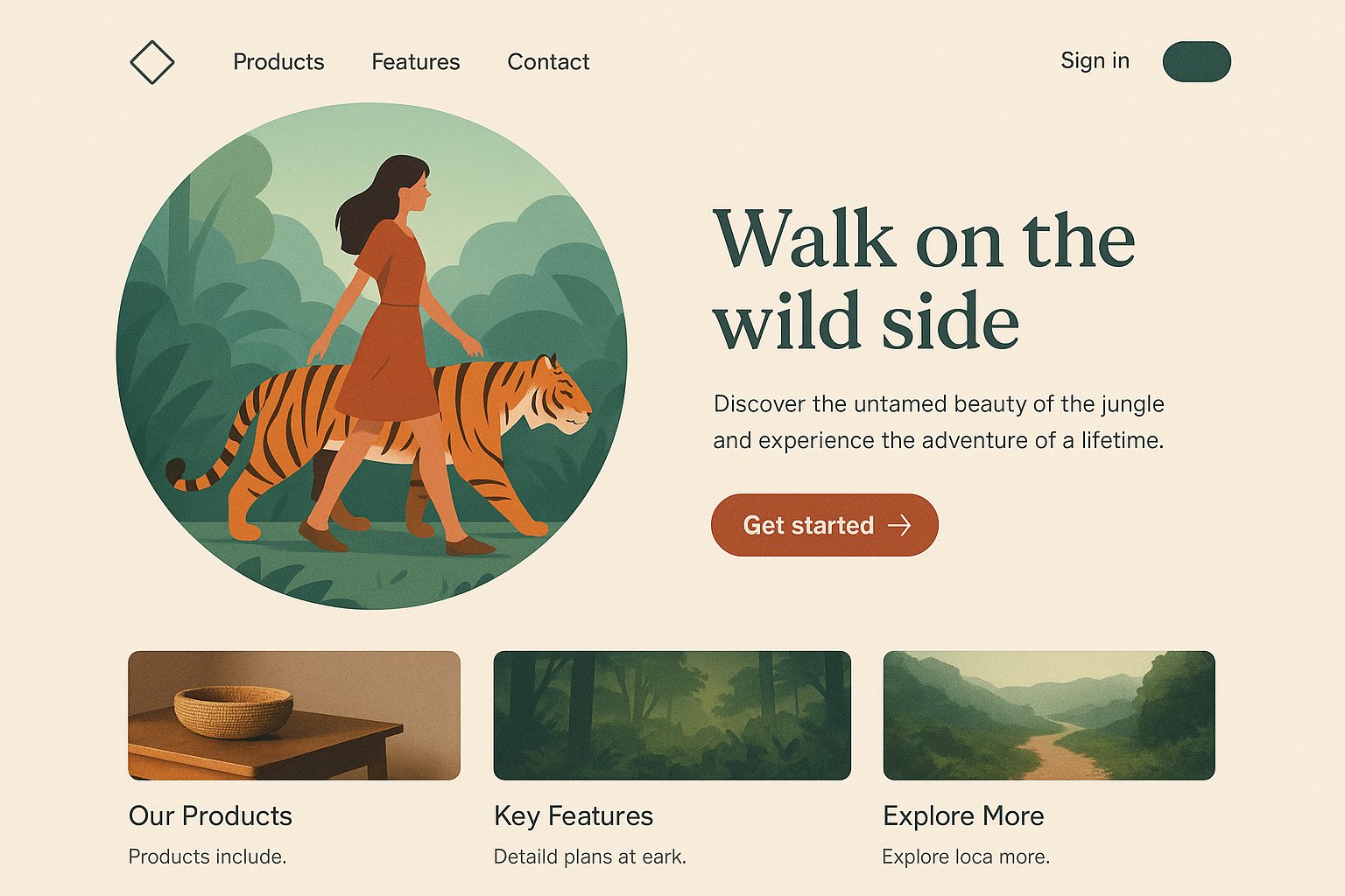 Landing Page Design Featuring Girl and Tiger in Jungle