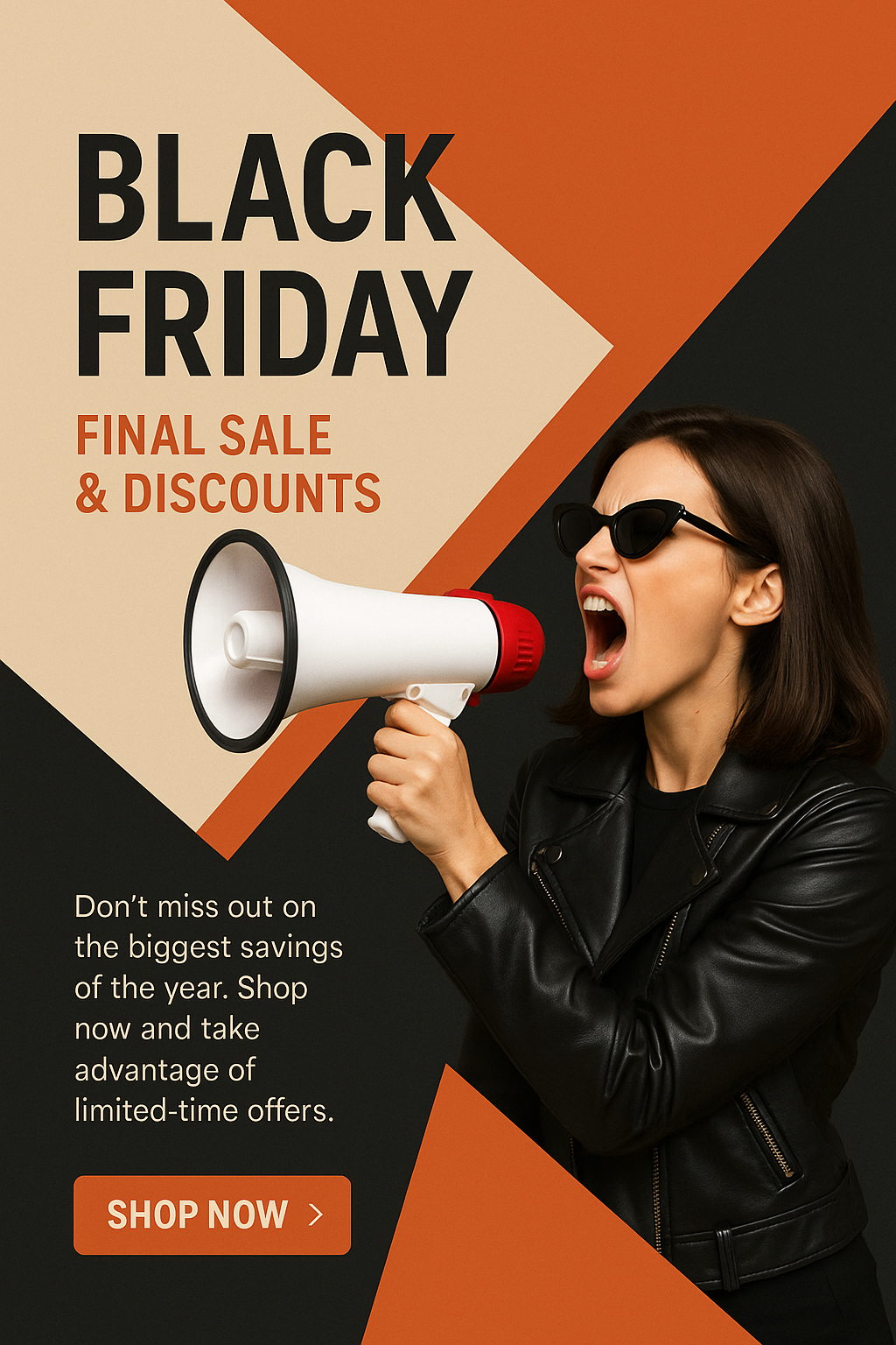 Exciting Black Friday Final Sale Announcements with Stylish Woman