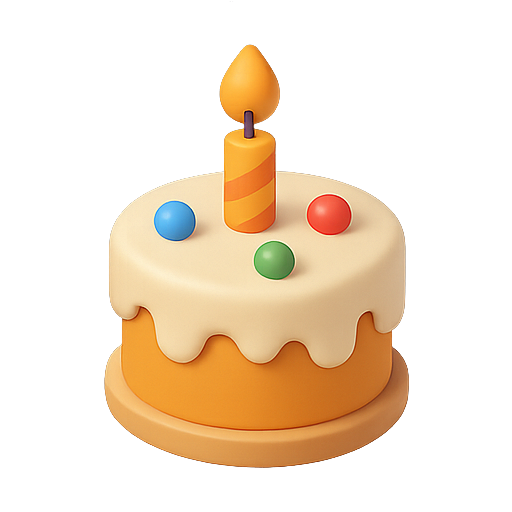 A vibrant, 3D-rendered birthday cake with a lit candle and colorful decorations. Ideal for celebratory themes in digital designs and illustrations.