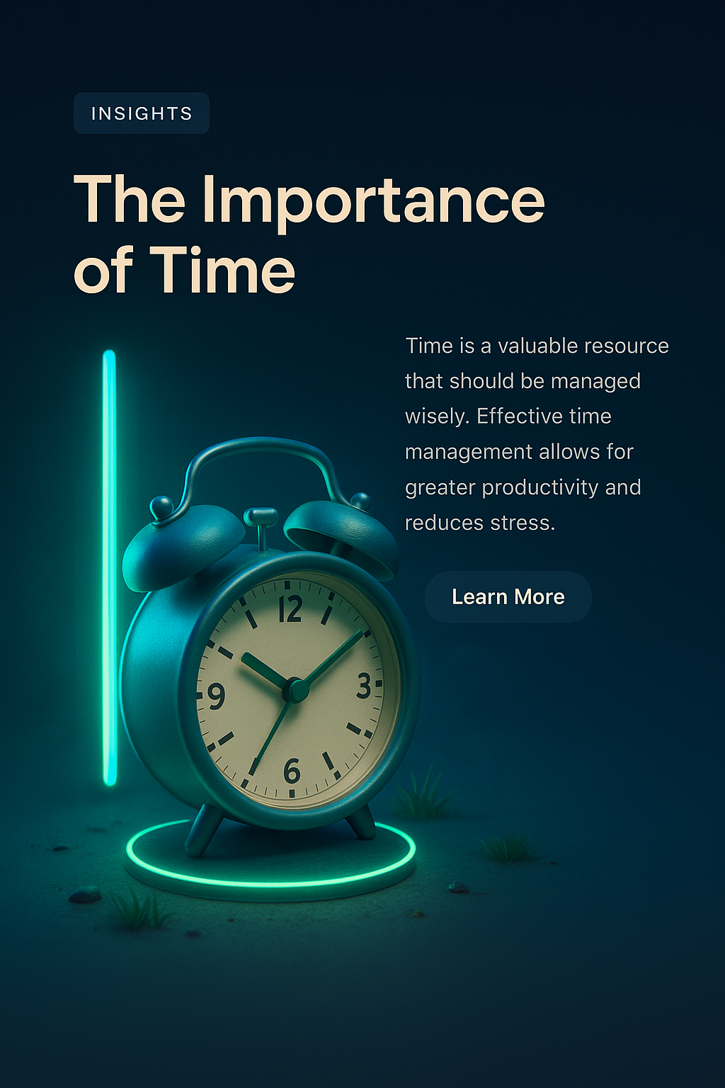 /Collection: /by davooda/Type: PNG/A visually stunning 3D representation of a clock surrounded by neon lights, emphasizing the importance of time management. The scene captures a dark gradient background with accents of color.