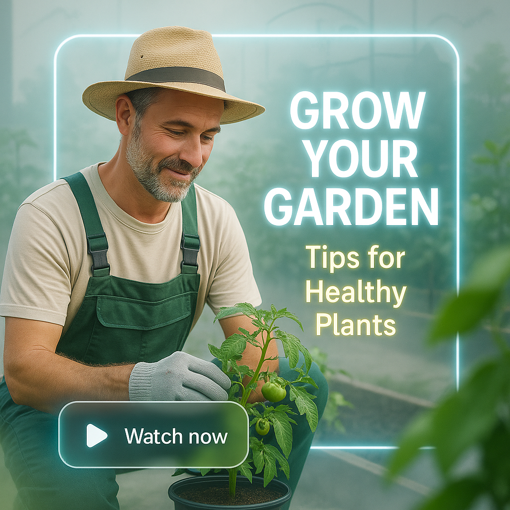 /Collection: /by davooda/Type: PNG/Inviting social media post featuring a gardener tending to plants, designed to promote tips for healthy gardening practices. The modern layout and soft colors appeal to gardening enthusiasts.