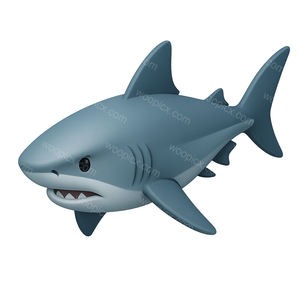 /Premium/Collection: /by davooda/Type: PNG/A stylized 3D bull shark icon depicted in a three-quarter view. The shark features a smooth, cartoonish design with a light blue color palette and an expressive face, set against a subtle dark background.