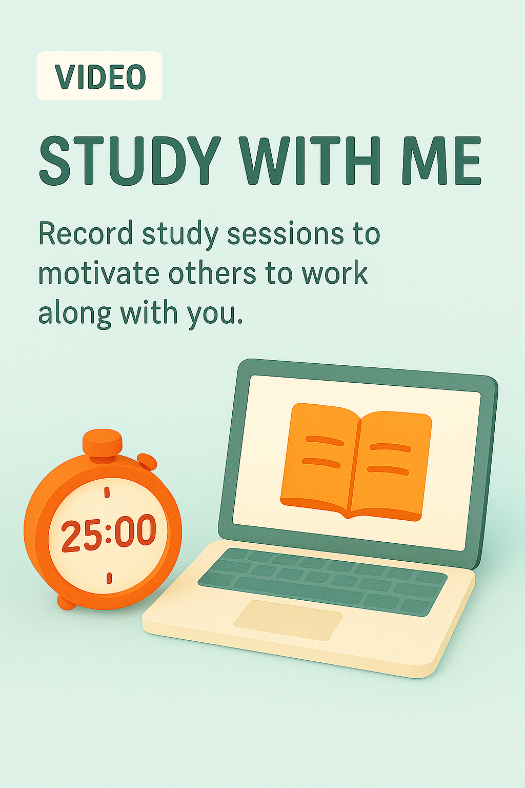 /Collection: /by davooda/Type: PNG/Playful graphic representing a 'Study With Me' video concept, featuring a laptop and timer. Ideal for educational content creators aiming to engage viewers in study sessions.