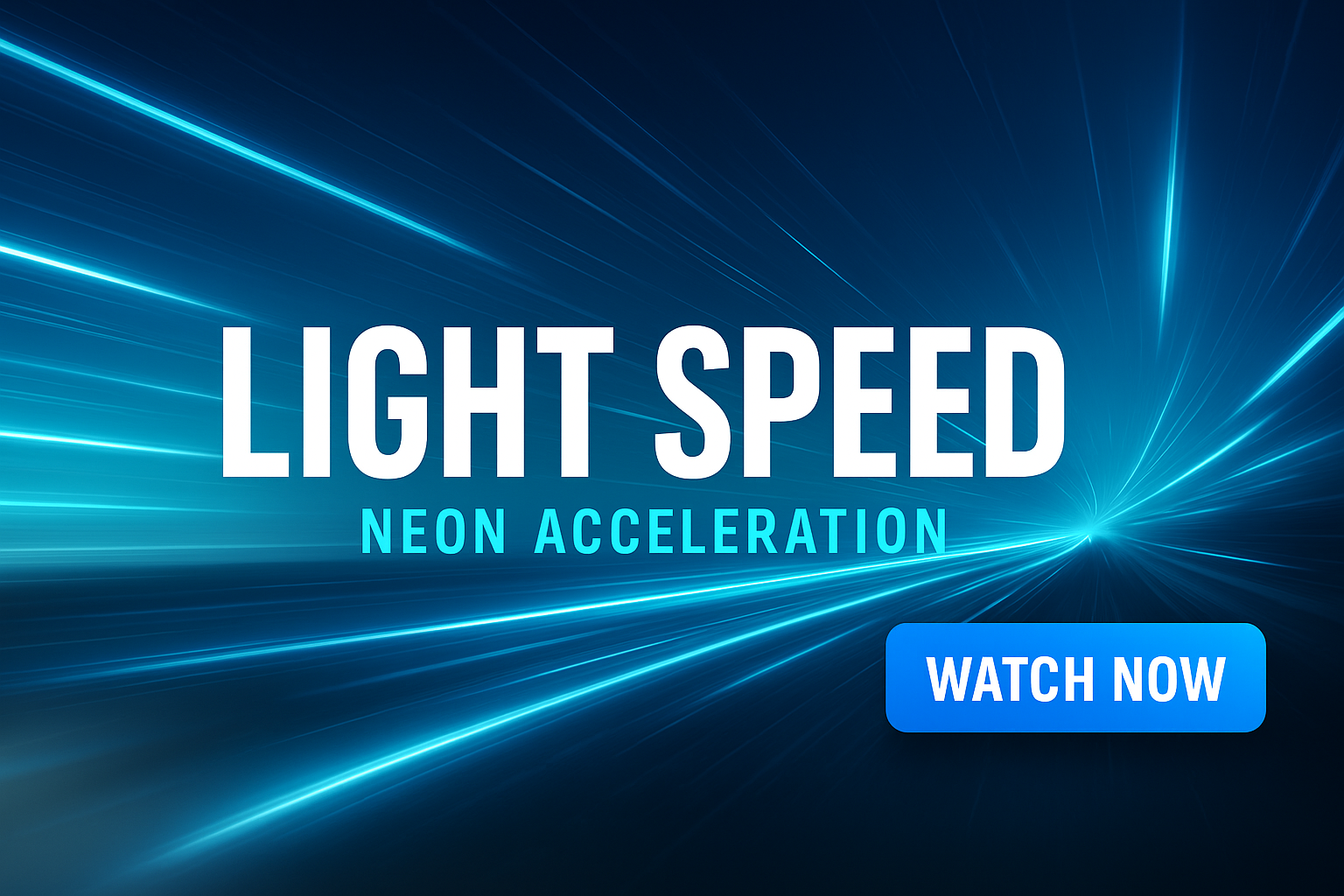A vibrant promotional graphic highlighting a 'Light Speed' theme with neon blue accents. Ideal for digital media campaigns or video promotions.