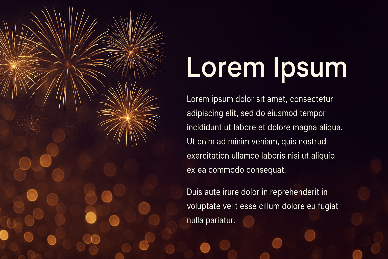 /Collection: /by davooda/Type: PNG/A festive graphic featuring fireworks against a bokeh background, ideal for event announcements or invitations, combining vibrant visuals with elegant typography.