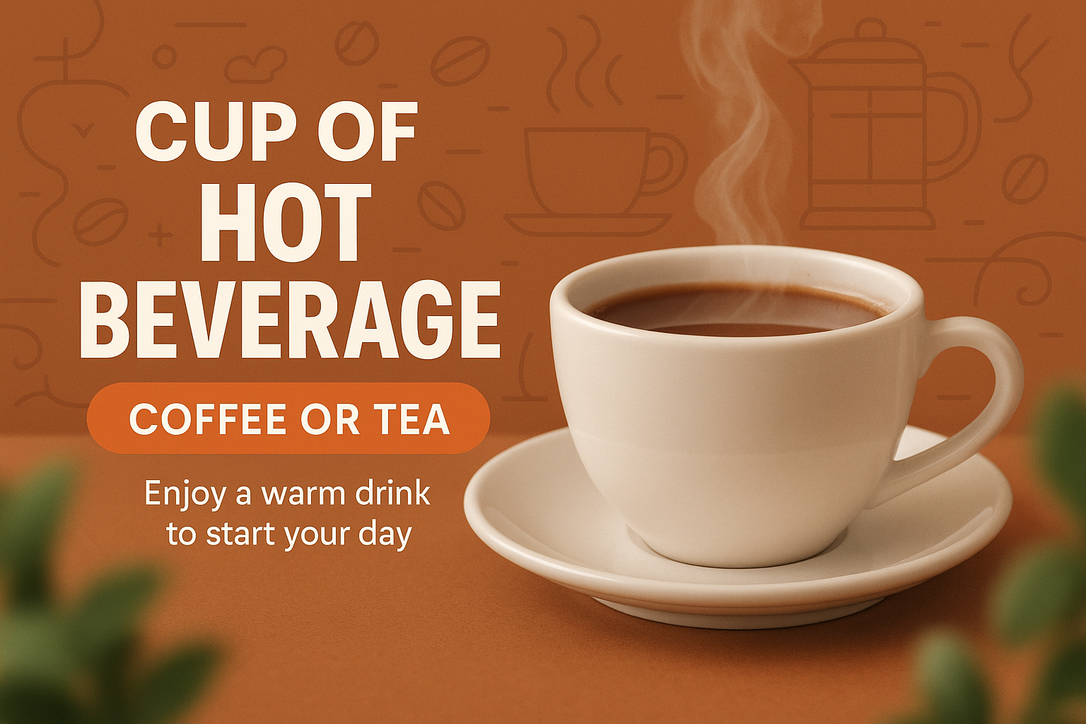 Warm Beverage Promotional Graphic Featuring Coffee and Tea