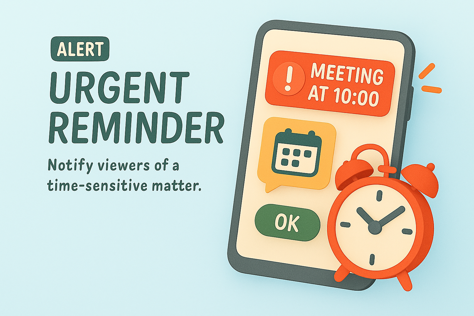 Colorful 3D Meeting Reminder Graphic with Alert Elements