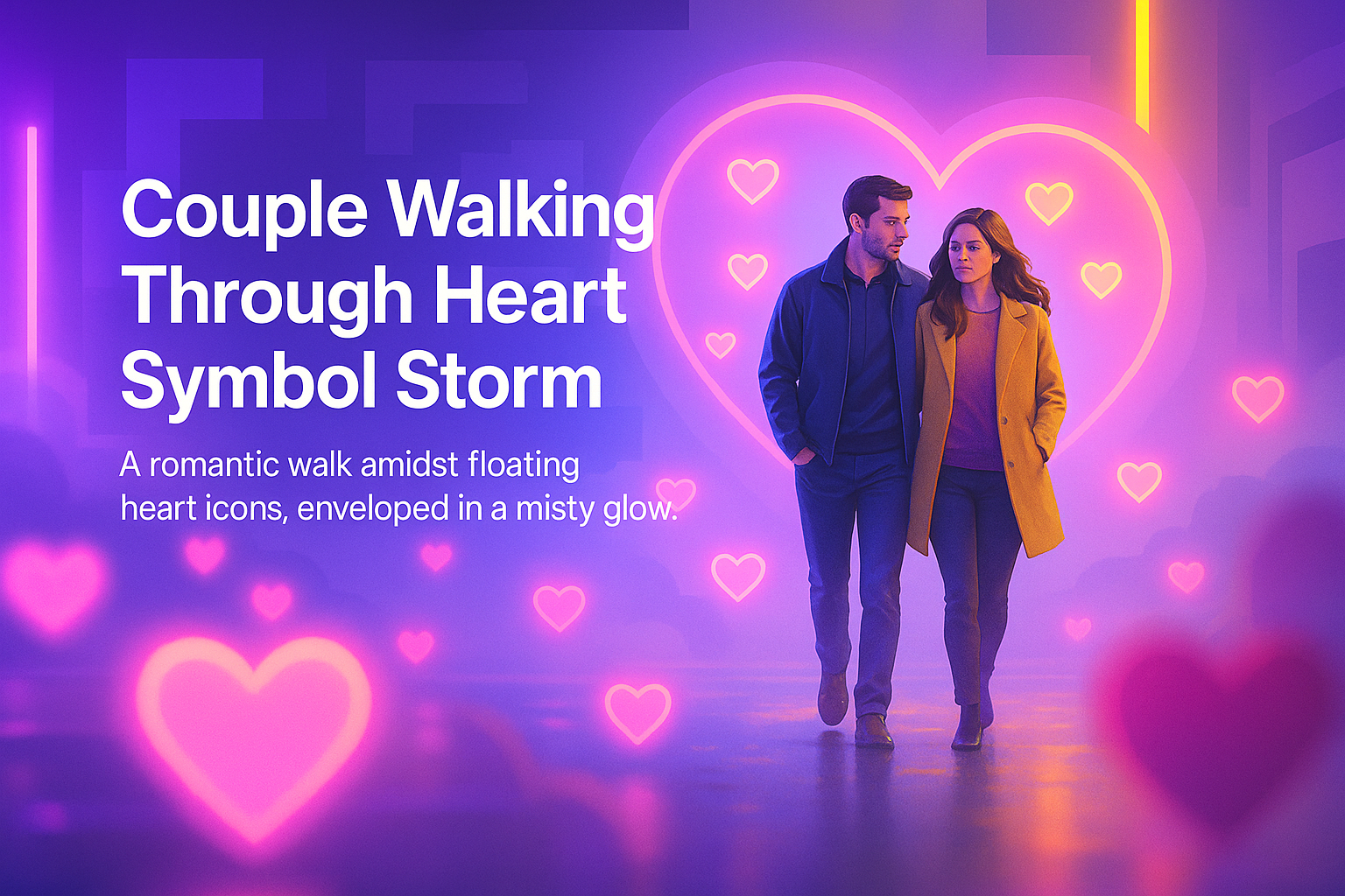 Romantic Couple Walking Through Heart Symbol Atmosphere