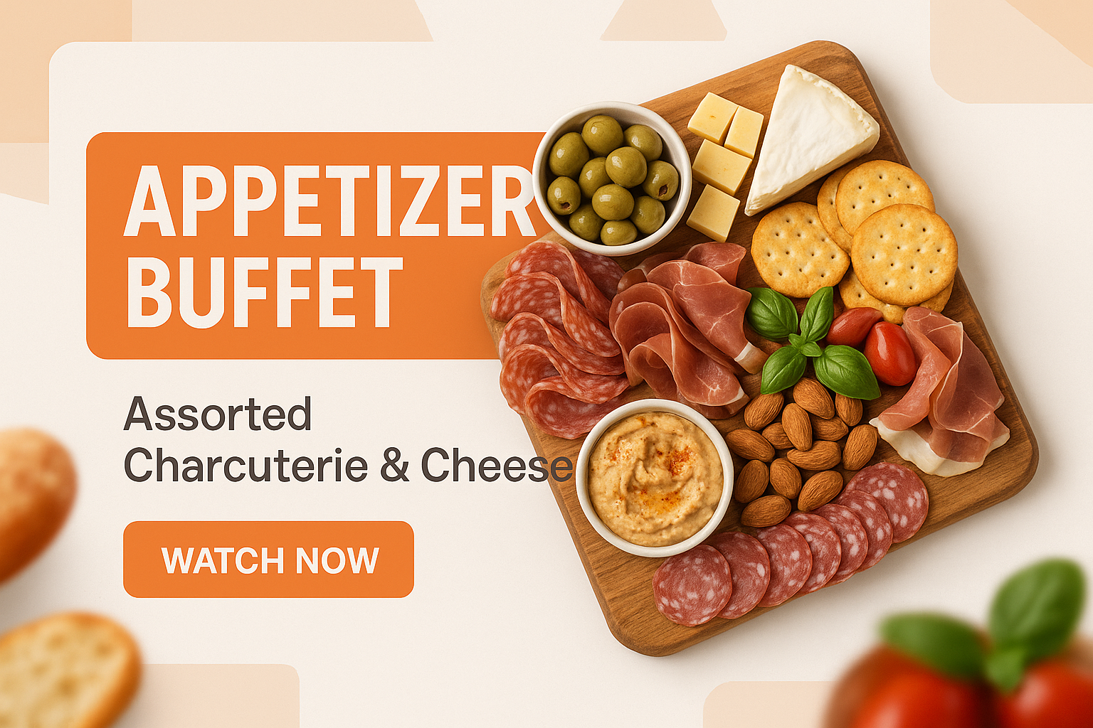 Delicious Appetizer Buffet Display with Charcuterie and Cheese