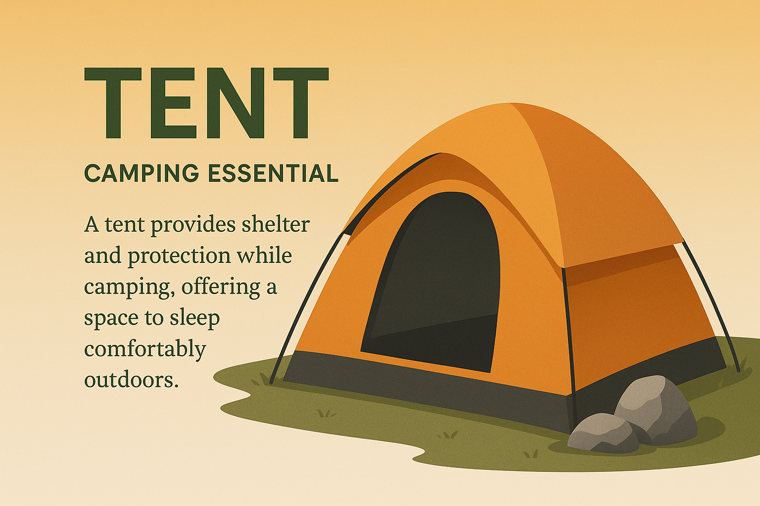 /Collection: /by davooda/Type: PNG/A visually appealing illustration of a tent showcasing its camping essentials. The design features a warm color palette, layered composition, and clear typography for easy reading.